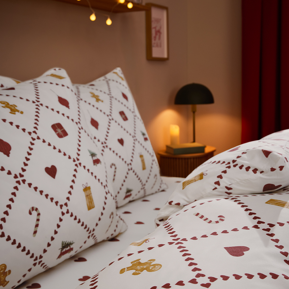 En festlig, mysig atmosfär från julsängkläder till julkuddarJultid innebär att sakta ner, lugna ner sig och göra det riktigt bekvämt för sig. När den kalla vinden blåser utanför och snöflingorna förvandlar allt till ett vinterlandskap, inbjuder mjuka kuddar och varma filtar till att dröja sig kvar inomhus. Jultextilier är mycket mer än bara vardagsföremål: de sätter stämningen, skapar en känsla av välbefinnande och uttrycker personlig stil, och med rätt textilier kan du förvandla ditt hem till en festlig oas av välbefinnande på nolltid. Oavsett om det handlar om juliga sängkläder i sovrummet, mysiga julkuddar i soffan eller juliga bordslöpare på matbordet: hemtextilier i juliga färger, mönster och material skapar en atmosfär som inbjuder till avkoppling, njutning och fest.