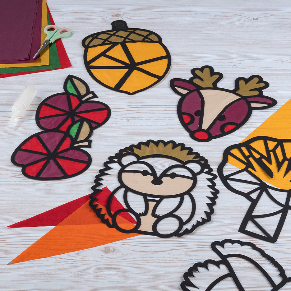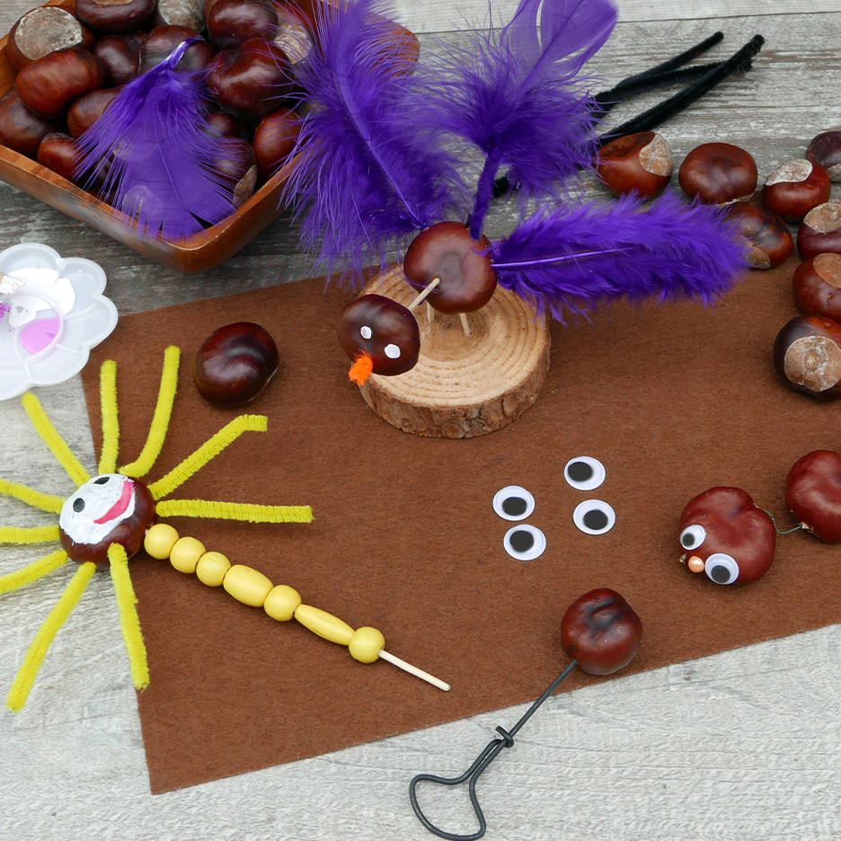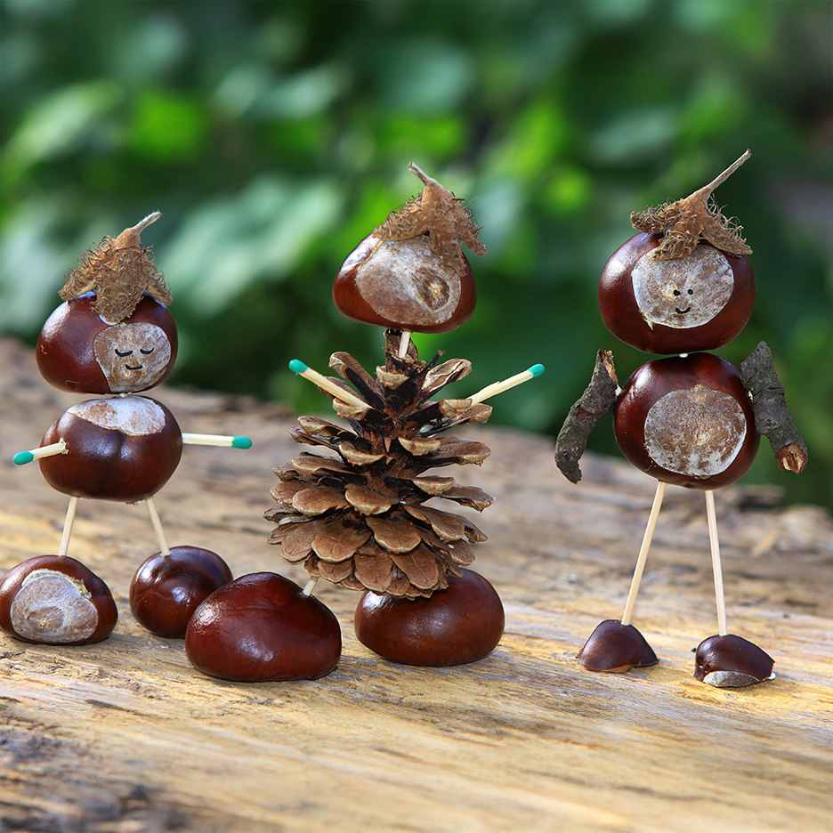 Höstpyssel att kopiera för de minstaFärgade höstlöv är ett mångsidigt material. Skapa en bild av naturen tillsammans med ditt barn, klistra löven på ett papper och förvandla det till ett riktigt konstverk med lite färg. Kastanjer är också lämpliga: Använd tandpetare för att sticka in armar och ben i dem, limma på rörliga ögon och använd piprensare för att lägga till små svansar eller antenner för att göra igelkottar, larver eller små fantasivarelser som är perfekta att leka med. Hattar eller kjolar kan tillverkas av skalen från bokollon. Ekollonens huvuden blir också bra huvudbonader, ögon eller knappar till dina figurer.för lågstadiebarnEn höstlykta är särskilt populär. Till den behöver du ett enkelt glas, transparent papper i varma färger och torkade löv. Limma fast allt på glaset och lys upp det inifrån med ett LED-ljus. På så sätt får du ett mysigt ljus under mörka höstkvällar. Små figurer av kottar är också fina, som du kan dekorera med filt, färgglada tygrester och naturmaterial. Gör ugglor, möss eller till och med små skogsandar för att skapa en mysig stämning på fönsterbrädan.för äldre barnEn hemmagjord dörrkrans av kvistar är en fin höstdekoration till hemmet. Knyt ihop kvistarna till en ring och dekorera den med nötter, kottar, löv och kanske en fin rosett. Denna fantastiska dekoration kommer att pryda din entré och glädja varje gäst. Ett annat fint projekt: en mobil av naturmaterial. Fäst bara snören i en kraftig gren och häng upp kastanjer, små träskivor, löv eller fjädrar i dem. Mobilen rör sig lätt i brisen och för in höstens magi i barnrummet.