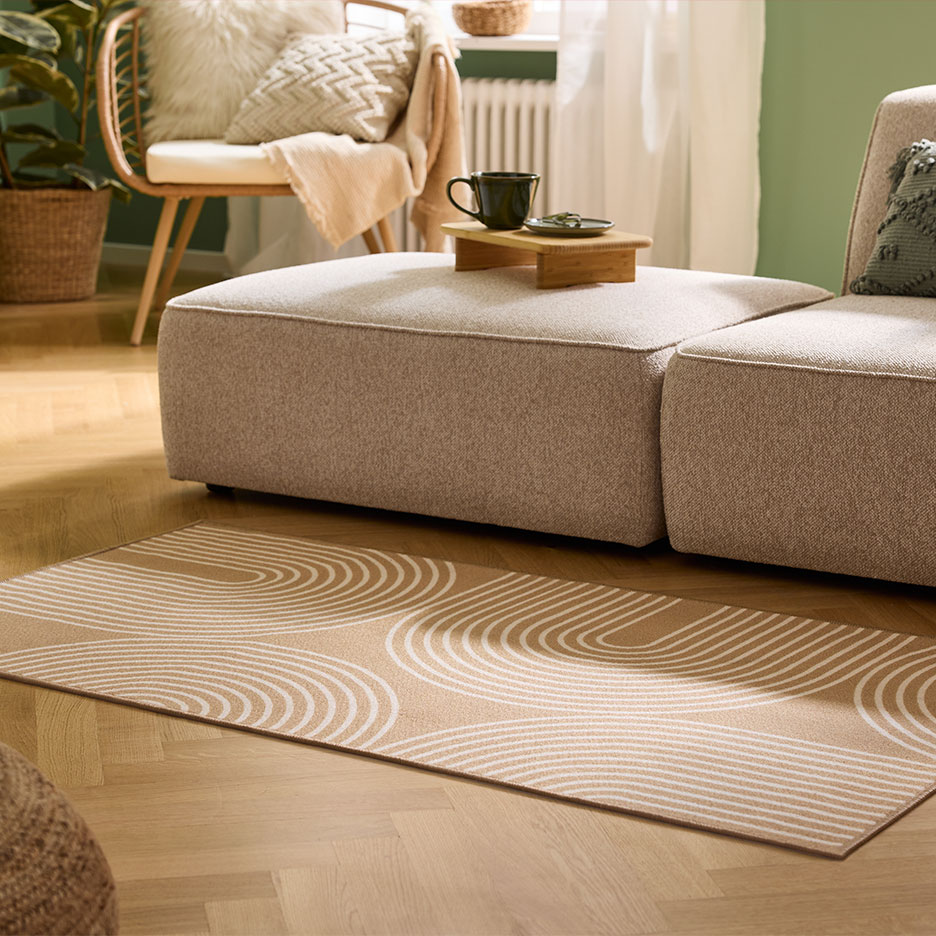 Du kan också skapa en städad look genom att organisera rummet. En matta i sittgruppen skapar en ö av lugn och utlöser en känsla av ordning: vi vill njuta av den fluffiga ytan till fullo och visa upp det vackra utseendet. Därför plockar vi nästan automatiskt undan saker som inte hör hemma där.