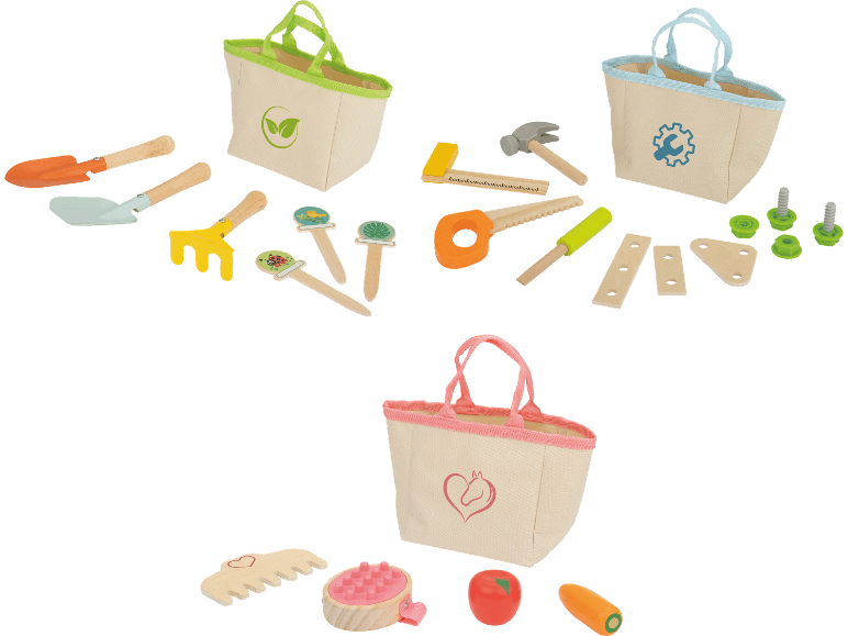 PlaytiveTräleksaker i väska Typ:Vänligen väljHästskötselset, 5 delar Trädgårdsskötselset, 7 delar Verktygsset, 12 delar 99.90*I butik 30/04 MärkningarBeskrivningBeskrivning
